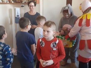 W środę uczniów odwiedzili mili goście – Panie ze Stowarzyszenia Nasze Dzieci – Nasza Szkoła. Mamy, przebrane w stroje wielkanocne, obdarowały wszystkich uczniów czekoladowymi kinder niespodziankami. Poczęstunek był możliwy dzięki wsparciu