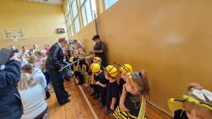 Najważniejszym momentem było jednak oficjalne pasowanie – pani Dyrektor z ogromną radością i dumą każdego malucha symbolicznie włączyła dzieci do przedszkolnej społeczności. Rodzice, pełni wzruszenia i dumy, z uwagą obserwowali swoje pociechy, które z odwagą stawiały pierwsze kroki w nowym etapie swojego życia.