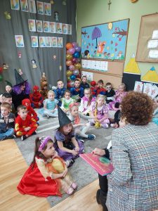Spotkanie z okazji Międzynarodowego Dnia Postaci z Bajek z dziećmi z Gminnego Przedszkola w Cieninie Kościelnym.