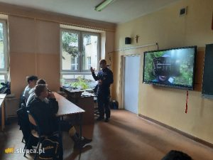 20 października 2021 roku dla uczniów klasy VIII zostało zorganizowane spotkanie w ramach realizacji Wewnątrzszkolnego Programu Doradztwa Zawodowego. Tym razem uczniów odwiedził sierż. sztab. Marcin Dębowski z Komendy Powiatowej Policji w Słupcy. Zaproszony gość przybliżył uczniom jakie trzeba spełnić wymagania aby zostać w przyszłości policjantem, jak wyglądają warunki pracy funkcjonariusza Policji oraz jakie są jego obowiązki. Spotkanie zorganizowała pani Monika Barańska.
