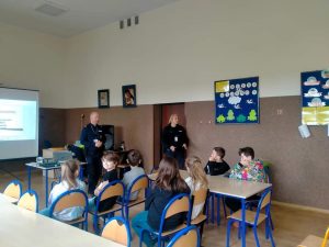 11 kwietnia naszą szkołę odwiedził sierżant sztabowy Marcin Dębowski oraz aspirant Małgorzata Król. Funkcjonariusze przedstawili uczniom klas I-III istotne fakty i zasady na temat bezpieczeństwa. Natomiast uczniowie klas IV-V zostali zapoznani z zagadnieniami dotyczącymi cyberprzemocy. (SP.)