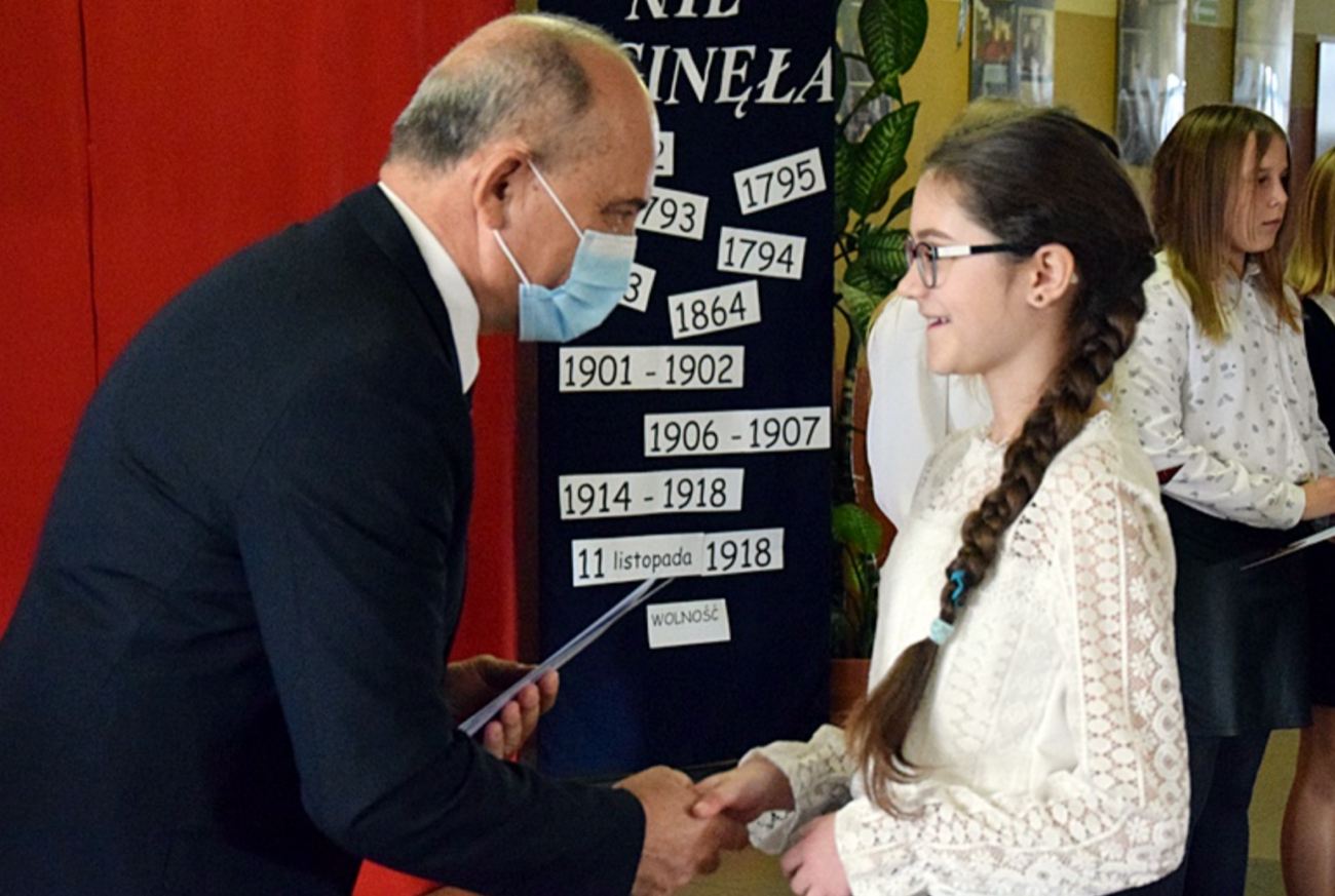 Spotkanie uświetniła część artystyczna w wykonaniu uczniów poświęcona 103. rocznicy odzyskania przez Polskę niepodległości.