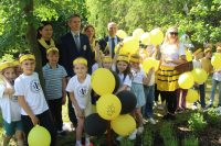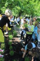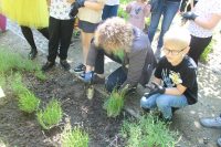 Uczniowie klas I-III słupeckiej Jedynki nasadzili dziś miododajne rośliny w ramach projektu Akademia Pszczoły Bohatera.