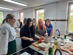 Warsztaty florystyczne są idealnym sposobem na odkrywanie nowych pasji, uczą precyzji, cierpliwości oraz pobudzają kreatywność. Zadaniem każdego uczestnika było wykonanie Flower box według własnej inwencję twórczej. Na kolejnych warsztatach tym razem kulinarnych uczniowie sprawdzali swoje umiejętności przy wyrabianiu ciasta na pizzę. Oczywiście była przepyszna
