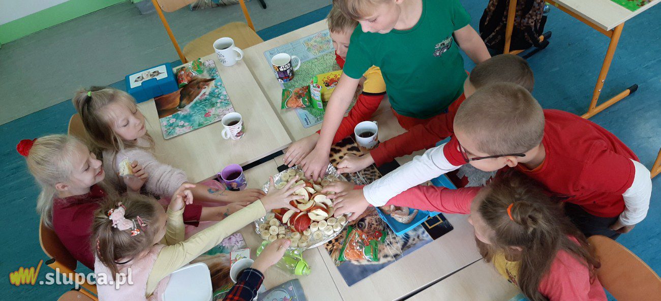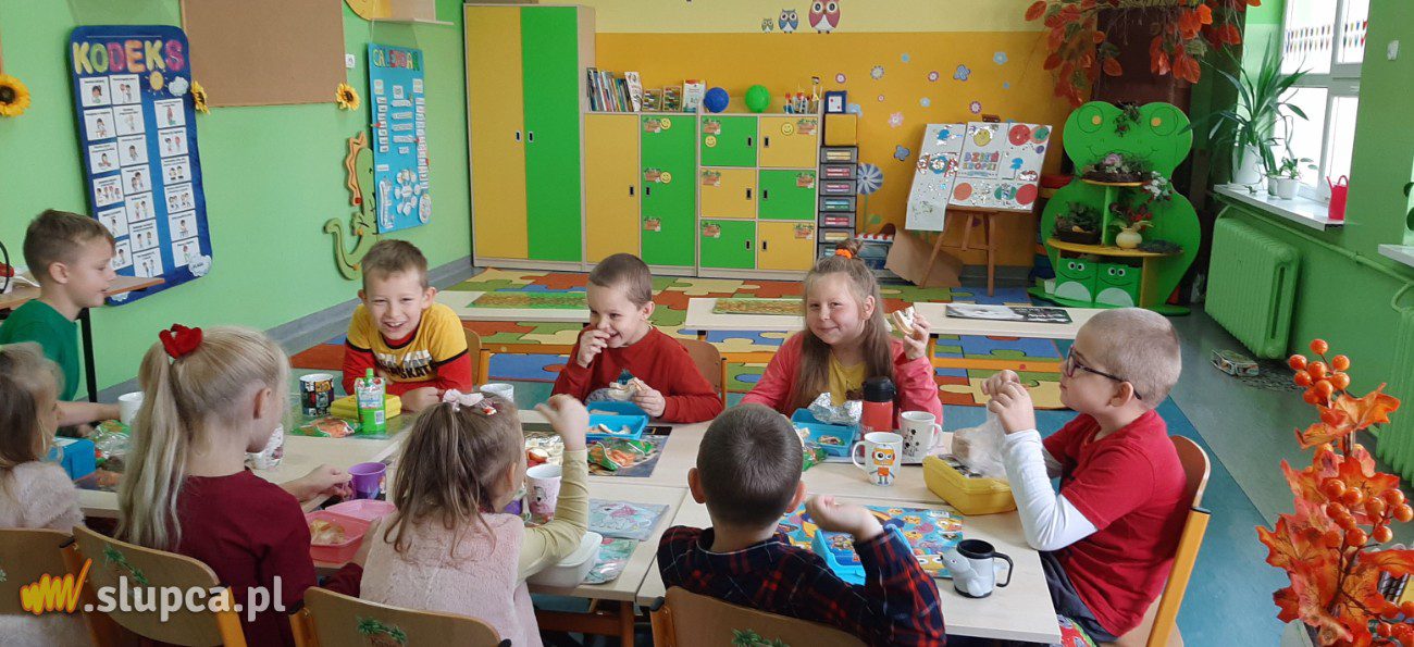 Tego dnia dominowały stroje w barwach jesiennych. Uczniowie dekorowali klasy, szczególnie dbając o kąciki przyrodnicze. Oczywiście nie mogło zabraknąć pysznego, zdrowego poczęstunku do śniadania. Każda klasa wykonała tematyczną pracę plastyczną. Wszystkim w tym dniu towarzyszył uśmiech i radość z nadchodzącej, tak uwielbianej przez dzieci pory roku.
