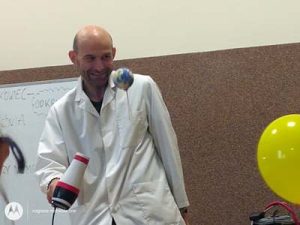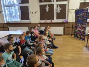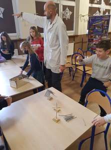 Przedszkolaki oraz uczniowie klas I – IV wzięli dziś udział w niecodziennych zajęciach. Szkołę odwiedził niezwykły człowiek – pan Robert Przybylski z firmy Pasjonaci, który ze swoim laboratorium w bardzo widowiskowy sposób przybliżył dzieciom trudne zagadnienia z fizyki oraz chemii. Dzieci były wprost zachwycone i z wielkim zainteresowaniem obserwowały wszystkie pokazy. Warsztaty miały formę zajęć praktycznych, w czasie których młodzi naukowcy sami wykonywali eksperymenty i doświadczenia. Zajęcia były bardzo fascynujące i wszystkich zachwyciły. Z pewnością udział w żywej lekcji rozbudził wśród uczniów zainteresowanie przedmiotami przyrodniczymi. (szkoła)