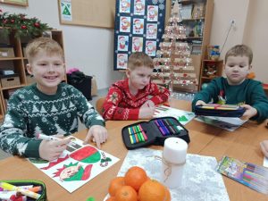 W ostatni dzień przed świętami Bożego Narodzenia tradycyjnie już w naszej szkole odbywają się wigilie klasowe . Tak też było i w tym roku , uczniowie każdej klasy przygotowali w swojej sali pięknie nakryty stół na którym nie zabrakło opłatka i świątecznych przysmaków . Podniosłości chwili towarzyszyło wspólne śpiewanie kolęd i obdarowywanie się prezentami . Uczniowie którym choroba nie pozwoliła uczestniczyć w spotkaniu , łączyli się ze swoją klasą online aby chociaż w ten sposób być razem w tym wyjątkowym dniu. Życzymy Wszystkim Wesołych Świat (sp)