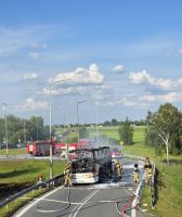 Dziś przed godz. 17 strażacy z naszego powiatu dostali zgłoszenie o pożarze autobusu w Sługocinie, na zjeździe z autostrady A2. Pojazd całkowicie spłonął. Na szczęście, w wyniku zdarzenia nikt nie ucierpiał. W akcji gaśniczej uczestniczyły zastępy ze Słupcy, Konina, Lądku, Wilcznej i Goliny.
