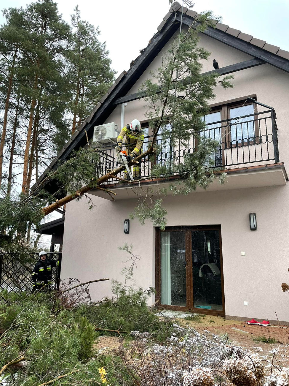 O zdarzeniu, do którego doszło ok. godz. 10.30, informują strażacy z Kosewa. – Dyżurny SKKP PSP w Słupcy zadysponował naszą jednostkę do powalonego drzewa, które wskutek silnych porywów wiatru przewróciło się na budynek mieszkalny uszkadzając przy tym elementy dachu oraz balkonu. Nasze działania polegały na zabezpieczeniu miejsca zdarzenia a następnie usunięciu drzewa – relacjonują druhowie. Na szczęście nikomu nic się nie stało.