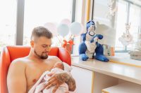 W naszym szpitalu kangurowanie jest standardem w opiece okołoporodowej i odbywa się na sali porodowej, w specjalnie przygotowanej sali do kangurowania – na oddziale noworodkowym, o którą zadbały nasze Panie pielęgniarki oraz na sali oddziału położniczego.