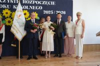 Wyjątkowy charakter miała dzisiejsza uroczystość rozpoczęcia roku szkolnego w Giewartowie. Otwiera się bowiem nowy rozdział, jeśli chodzi o zarządzanie placówką. Dziś stanowisko dyrektora oficjalnie objęła Ewelina Błażejewska, zastępując na tym stanowisku Krzysztofa Kamińskiego. Ustępujący dyrektor otrzymał podziękowania za dotychczasowe zarządzanie, nowa pani dyrektor – symboliczny klucz do szkoły. Na mocy zarządzenia wójta, Ewelina Błażejewska dyrektorem będzie przez najbliższe 5 lat.
