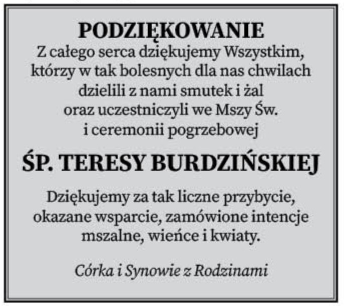 Bliskim pani Teresy składamy wyrazy współczucia.