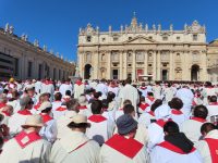 Wydzielone zostały tam sektory dla księży z całego świata, którzy chcieli koncelebrować Mszę św. Zanim tam weszliśmy, dokładnie sprawdzano nas, czy rzeczywiście jesteśmy księżmi, musieliśmy okazać dokumenty potwierdzające, czyli celebret. W pewnym momencie zrobiło się spore zamieszanie, bo okazało się, że chętnych do koncelebry jest dwa razy więcej księży, niż się spodziewano. Najpierw padł komunikat, że wpuszczą jeszcze tylko kilku księży, ale później wydzielono dodatkowe sektory tak, by wszyscy się zmieścili.