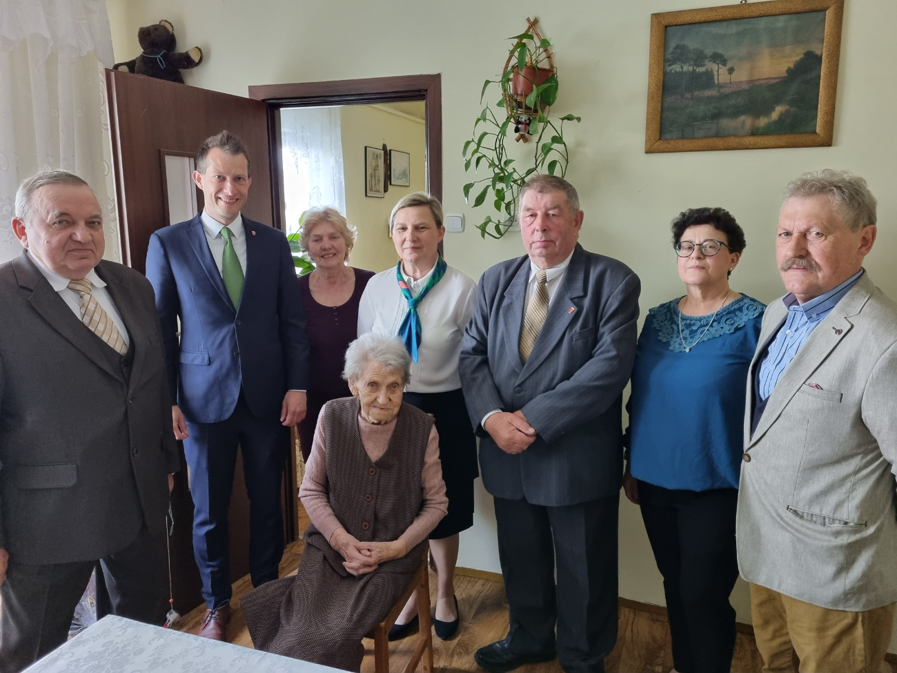 – Z tej okazji dostojną Jubilatkę odwiedził Wójt Gminy Powidz Jakub Gwit wraz z Radnym Gminy Powidz Wojciechem Wysockim i Panią Urszulą Marcinkowską z Biura Terenowego ZUS w Słupcy. Pan Wójt w imieniu własnym i całej gminnej społeczności złożył najserdeczniejsze życzenia oraz wręczył list gratulacyjny od Prezesa Rady Ministrów Mateusza Morawieckiego. Jubilatka otrzymała również kwiaty, prezent i kosz ze smakołykami.