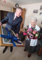 Pani Kazimiera Karpińska świętuje dziś setne urodziny. Z życzeniami odwiedził ją burmistrz Michał Pyrzyk. – Pani Kazimiera jest rodowitą Słupczanką. Choć trzykrotnie wyjeżdżała ze Słupcy: do Francji, Niemiec i Stanów Zjednoczonych, to zawsze wracała do naszego miasta. Tutaj otoczona jest wspaniałą opieką dzieci ze współmałżonkami, wnucząt i prawnucząt. Pani Kazimiero, życzę Pani jeszcze wielu lat w zdrowiu, wszelkiej pomyślności i szczęśliwych chwil wolnych od jakichkolwiek trosk – napisał burmistrz.