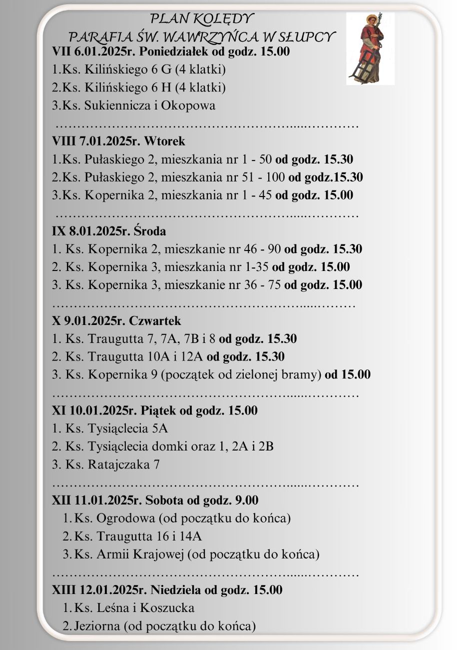 Przedstawiamy plan kolędy na najbliższe dni w parafii pw. bł. M. Kozala oraz św. Wawrzyńca w Slupcy.