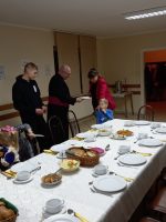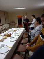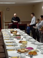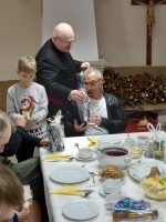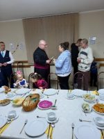 – W wigilijny wieczór o godz. 16.00 spotkaliśmy się wieczerzy. Po odśpiewaniu kolędy „Wśród nocnej ciszy” i wysłuchaniu Ewangelii o Narodzeniu Jezusa podzieliliśmy się opłatkiem i złożyliśmy sobie nawzajem życzenia. Później zasiedliśmy do stołu wigilijnego, aby spożyć przygotowane potrawy. W wieczerzy uczestniczyli członkowie wspólnoty „Skandal Krzyża” oraz rodziny ukraińskie mieszkające w naszej parafii. Nie zabrakło też prezentów świątecznych i śpiewania kolęd (po polsku i ukraińsku). Dziękujemy wszystkim, dzięki którym mogliśmy zasiąść do tak suto zastawionego stołu i przeżywać radość spotkania wigilijnego! – czytamy na stronie parafii.