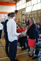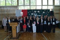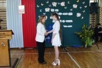 Podczas uroczystości zostały wręczone liczne nagrody. Nagrodę Starosty otrzymała Anna Tomaszewska z klasy 4c, która ukończyła szkołę ze średnią 5,27. Wśród uczniów z najwyższą średnią znalazły się jeszcze Anna Koziorowska z klasy 4a – średnia 4,93 oraz Michalina Szymańska z klasy 4b ze średnią 4,8. Pani dyrektor Urszula Radosiewicz, Pani wicedyrektor Agnieszka Leżała i Pani Kamila Pyrzyk wręczył nagrody uczniom, którzy przez cztery lata angażowali się w pracę na rzecz szkoły. Wśród wyróżnionych znaleźli się z klasy 4a: Anna Koziorowska, Malwina Majewska, Julia Roszak, Alicja Wierzchowiecka, Patrycja Woźniak i Wojciech Leśniowski; z klasy 4b: Julia Przbył, Oliwia Byczkowska, Julia Dzikiewicz, Antonina Dyncer, Klaudia Maniak, Zuzanna Podgórna, Marcelina Przybylska; z klasy 4c: Kornela Adamczyk, Alicja Chojnacka i Dominika Osowczyk. Jak co roku, nagrodzono również osoby, które reprezentowały szkołę na arenie sportowej. Z klasy 4a: Annę Koziorowską, Mikołaja Grześkiewicza, Szymona Strzyżewskiego, Huberta Półrolniczaka; z klasy 4b: Gabrielę Drewniacką, Antoninę Dyncer, Klaudię Liczycką, Julię Przybył, Michalinę Szymańską, Oliwię Stachowiak, Jakuba Kaczmarka; z klasy 4c: Dominikę Osowczyk i Bartosza Molendę.