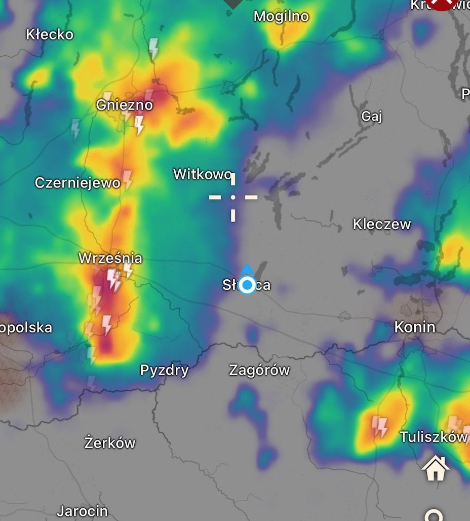 W okolicy Słupcy przeszły dziś gwałtowne burze z gradobiciem. Najgorzej było w Gnieźnie, ale mocno padało też m.in. we Wrześni. Czy nas też czeka załamanie pogody? Z dostępnych w aplikacji windy map pogodowych wynika, że do Słupcy burze raczej nie dotrą. Na wszelki wypadek jednak uważajcie.