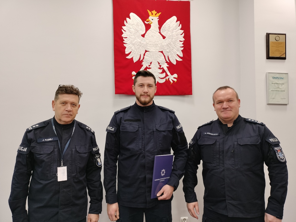 Łukasz Wyderkiewicz służy w zespole prewencji posterunku w Strzałkowie. Właśnie został młodszym aspirantem. Awansował przedterminowo, a zdecydował o tym komendant wojewódzki „w uznaniu szczególnych zasług i osiągnięć służbowych”. – Akt mianowania wręczył policjantowi Komendant Powiatowy Policji w Słupcy insp. Roman Ciesielczyk, wskazując na duże zaangażowanie funkcjonariusza w codzienne obowiązki oraz wysoki poziom realizacji powierzonych mu zadań m.in. szereg zatrzymań na gorącym uczynku sprawców różnych przestępstw – czytamy na stronie słupeckiej policji.