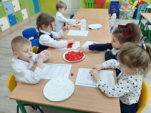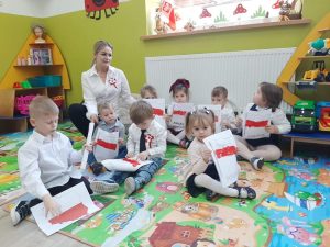 11 listopada 1918 roku był bardzo szczęśliwym dniem dla wszystkich Polaków. Właśnie tego dnia po 123 latach niewoli, Polska odzyskała niepodległości. Dlatego co roku 11 listopada obchodzimy nasze święto narodowe – Święto Niepodległości. 10 listopada 2021r. w Przedszkolu w Młodojewie również obchodziliśmy Święto Odzyskania przez Polskę Niepodległości. Z tej okazji wszystkie dzieci uroczyście świętowały ten wyjątkowy dla Nas – Polaków dzień. Działania miały na celu kształtowanie u dzieci miłości i przywiązania do kraju ojczystego, jego kultury i tradycji oraz zapoznanie z symbolami narodowymi poprzez słuchanie literatury, oglądanie filmów edukacyjnych a także wykonanie prac plastyczno – technicznych. Przedszkolaki z obu grup dumnie prezentowały przypięte biało – czerwone rozetki podczas recytacji wierszy „Barwy Ojczyste” Cz. Janczarskiego, „Katechizm polskiego dziecka” W. Bełzy oraz śpiewania hymnu.