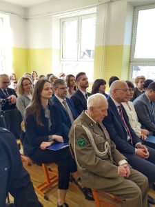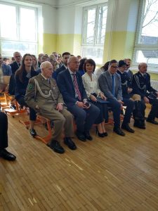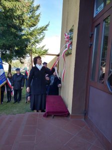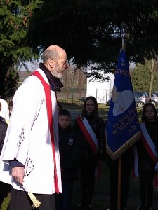 Ksiądz proboszcz Tadeusz Stasiak. poświęcił tablicę pamiątkowa, po czym została oficjalnie odsłonięta. A dalsza część uroczystości odbyła się na sali gimnastycznej, gdzie wszyscy obejrzeli montaż słowno – muzyczny i prelekcję.