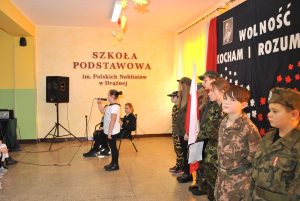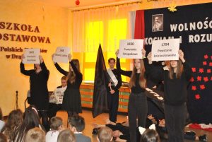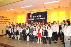 Niepodległość i wolność to dary, z których należy dobrze korzystać i o które trzeba się nieustannie troszczyć. Kolejna rocznica odzyskania przez Polskę suwerenności stała się okazją do przypomnienia jej historii, obfitującej w szereg dramatycznych wydarzeń. 10 listopada 2021 roku społeczność Szkoły Podstawowej im. Polskich Noblistów w Drążnej uroczyście obchodziła Narodowe Święto Niepodległości. Uroczystości rozpoczęty się o godzinie 11:11 wspólnym odśpiewaniem hymnu narodowego, który wprowadził wszystkich zebranych w patriotyczny nastrój. Podniosła atmosfera towarzyszyła także widzom spektaklu słowno-muzycznego przygotowanego przez uczniów z klas V-VIII. Przedstawienie ukazywało najważniejsze dzieje naszego państwa – od utraty niepodległości, z którą Polacy nigdy nie pogodzili się, poprzez podejmowanie zjednoczonego wysiłku narodu na rzecz odzyskania wolności.
