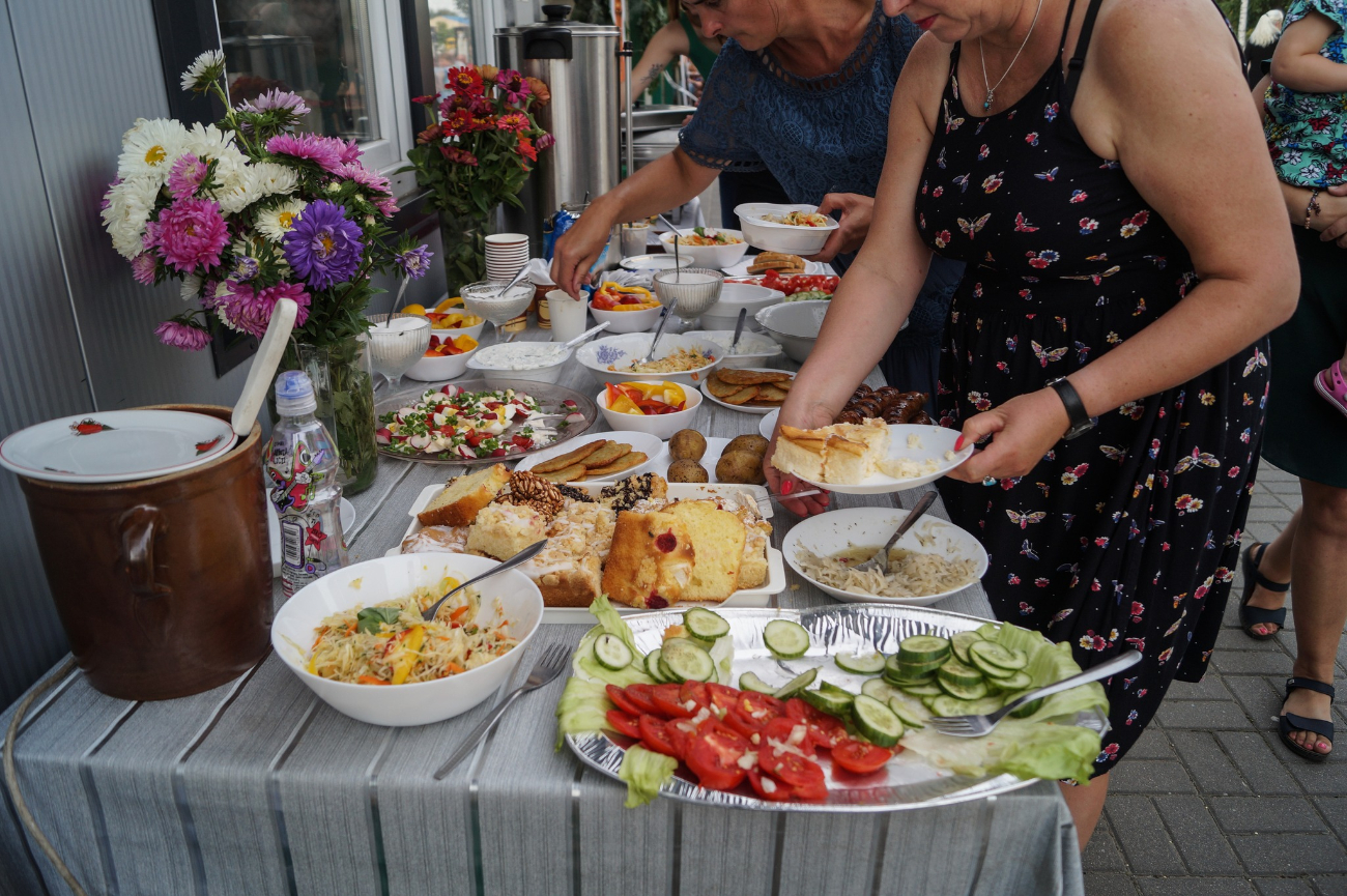 Przy pięknej pogodzie wspólnie bawiło się kilkaset osób. Organizatorzy przygotowali wiele atrakcji. Ogromnym powodzeniem cieszyły się placki ziemniaczane pani Marlenki, gziczek pani Gosi, czy swojskie wyroby p. Marka czy p. Marcina, chleb ze smalcem pani Elii sałatki oraz mięsa i pyszne ciasto przygotowane przez nasze panie. Panowie dzielnie gości obsługiwali przy grillu oraz ognisku. Do tańca przygrywał DJ.