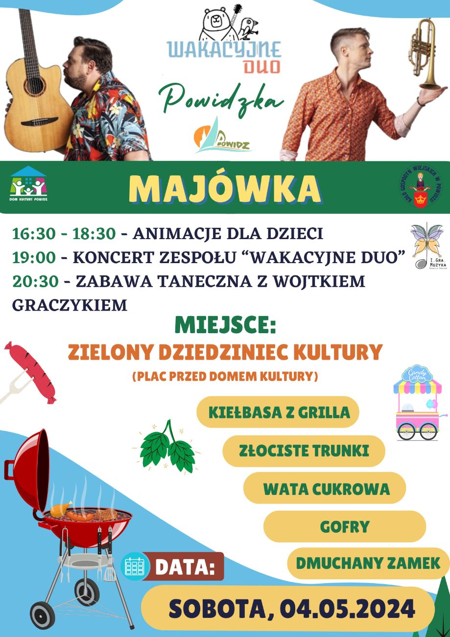Gmina Powidz zaprasza na majówkę i oficjalne rozpoczęcie sezonu grillowego. W programie przewidziano sporo atrakcji. Szczegóły na plakacie poniżej.