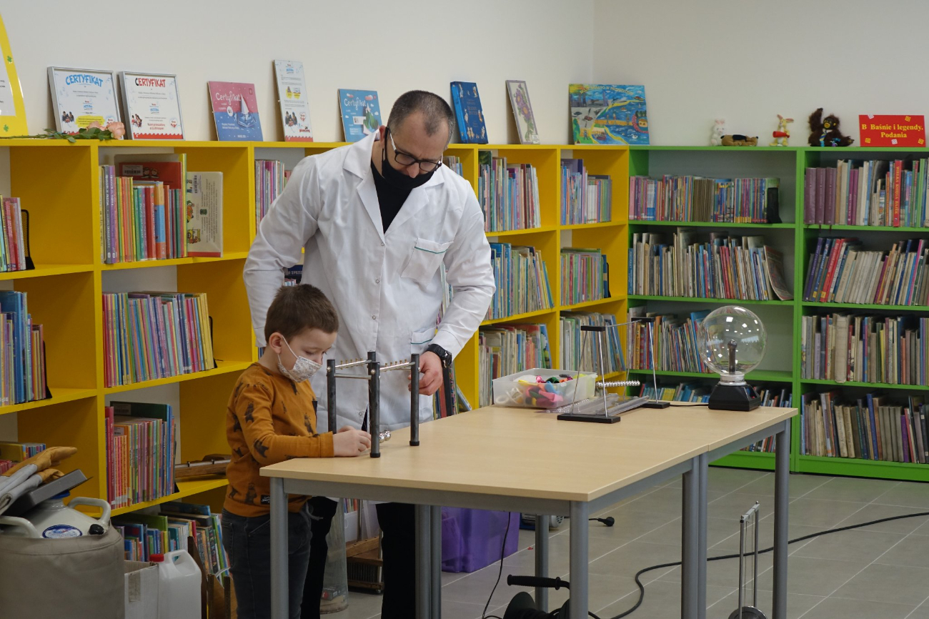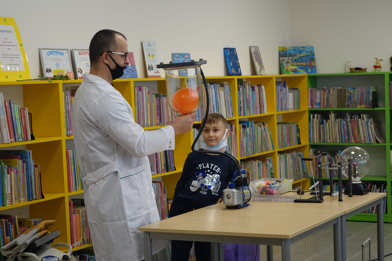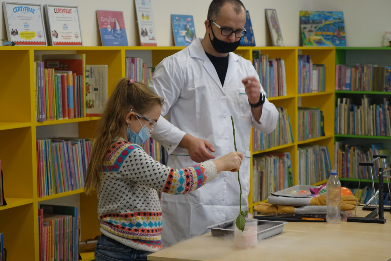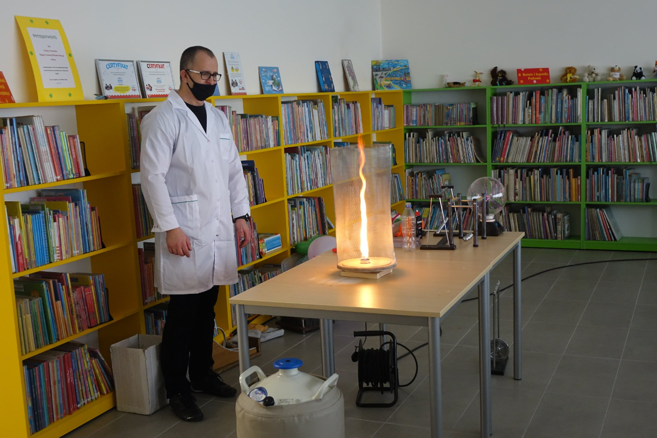 – Dzieci miały okazję wziąć udział w interesujących eksperymentach fizycznych. Dowiedziały się co to jest próżnia, prąd elektryczny, czy można usiąść na gwoździach, jak powstaje tornado ogniowe i co można zrobić z suchym lodem i ciekłym azotem. Dzięki tym doświadczeniom przekonały się, że nauka to magia – wtorkowe zajęcia opisują pracownicy biblioteki.