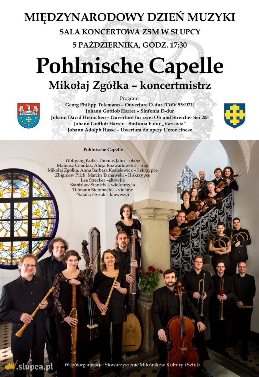 5 października w sali koncertowej Zespołu Szkół Muzycznych w Słupcy wystąpi Pohlnische Capelle. To międzynarodowy projekt wykonawczo-badawczy, który zasadza się na autentycznych przesłankach historycznych, sięgających wieku XVII i XVIII. Podówczas, w trakcie trwania personalnej unii między Saksonią i Królestwem Polskim powstała najlepsza i najbardziej znamienita kapela dworska tamtych czasów – Dresdner Hofkapelle. Ponieważ uosabiana przez postać króla Augusta II, następnie przez Augusta III unia z Polską wymuszała funkcjonowanie dwóch dworów – w Dreźnie i Warszawie, wybitni muzycy podróżowali wraz z orszakiem królewskim. Zespół, który występował wówczas w Warszawie i współpracował z polskimi muzykami zyskał miano Pohlnische Capelle. Inkorporował również wielu innych zagranicznych wykonawców zgodnie z panującym kosmopolitycznym trendem europejskim.