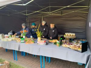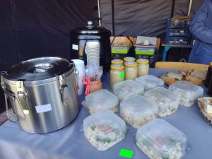 Pracowite panie z KGW Lądek wystawiły przepyszne dania na Małej Polagrze, które można było skosztować i przy okazji zasilić puszkę dla Szymka Mizerskiego.