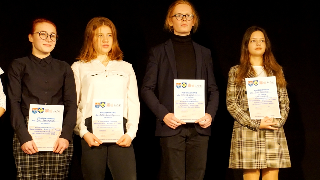 W konkursie wzięło udział 9 recytatorów ze szkół podstawowych oraz 7 ze szkół ponadpodstawowych. Zaprezentowali się także wokaliści: ze szkół podstawowych 3 solistki oraz zespół wokalno-instrumentalny. Natomiast w kategorii szkół ponadpodstawowych wystąpiło 5 solistek oraz żeński duet.