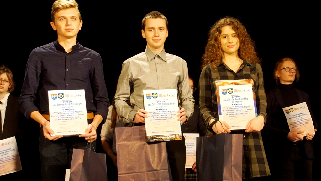 Recytatorzy szkół ponadpodstawowych: I m. Marta Ziółkowska – LO Słupca, II m. Mateusz Budziński – LO Słupca, III m. Przemysław Kostyszyn – ZSZ Słupca.