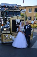 Gdy kilka lat temu Łukasz Galor pierwszy raz zobaczył tę ciężarówkę na zlocie motocyklowym w Gnieźnie, od razu się w niej zakochał. – Gdy później zacząłem pracować jako zawodowy kierowca postanowiłem sobie, że zrobię wszystko, żeby właśnie tym autem jechać do ślubu – wspomina pochodzący z Łukomia, a od kilku lat mieszkający w Ciążeniu Łukasz. Innym mężczyznom pewnie ciężko byłoby przekonać przyszłą żonę do wyboru takiego auta na najważniejszy dzień w życiu, ale Łukasz nie miał z tym problemu. Jego ukochana Aneta (zd. Krysińska) również jest zawodowym kierowcą. Gdy przyszedł czas na organizowanie ślubu i moja ówczesna narzeczona pierwsza raz zobaczyła tę ciężarówkę, widziałem w jej oku ten blask – wspomina nasz rozmówca.