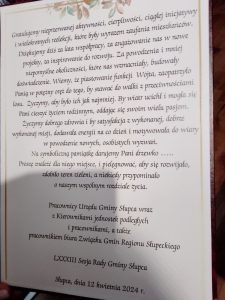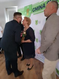 Słowa podziękowania na ręce wójt Grażyny Kazuś skierowali radni, starosta Jacek Bartkowiak z Aleksandrą Kazuś Wróblewską, sekretarz Karolina Walczak z pracownikami gminy oraz dyrektorzy szkół.