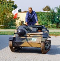 Jednym z najciekawszych momentów spotkania był pokaz miniaturowego czołgu, przywiezionego przez Nowosielskiego. Uczniowie mieli okazję zobaczyć tankietkę w akcji — jej jazdę oraz sterowanie ukazujące mechanikę działania pojazdu.