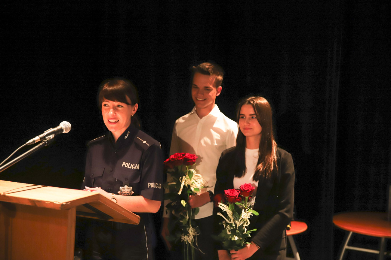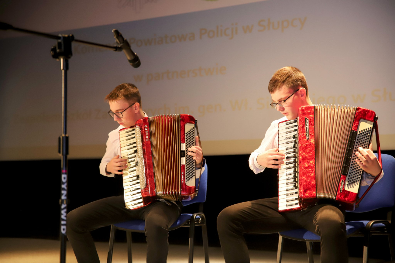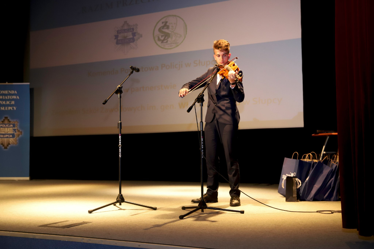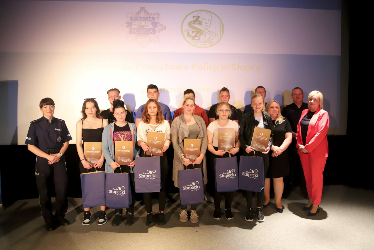 Komendant Powiatowy Policji w Słupcy insp. Roman Ciesielczyk wraz z dyrektorem ZSZ w Słupcy Stanisławem Kłanieckim, wręczył nagrody uczniom, którzy otrzymali konkursowe wyróżnienia. Specjalne podziękowania trafiły do do autorki projektu p. Marii Radoń-Kowalskiej. Miłym urozmaiceniem spotkania były występy młodych artystów – uczniów ZSZ w Słupcy, którzy przygotowali krótki program muzyczno-instrumentalny.