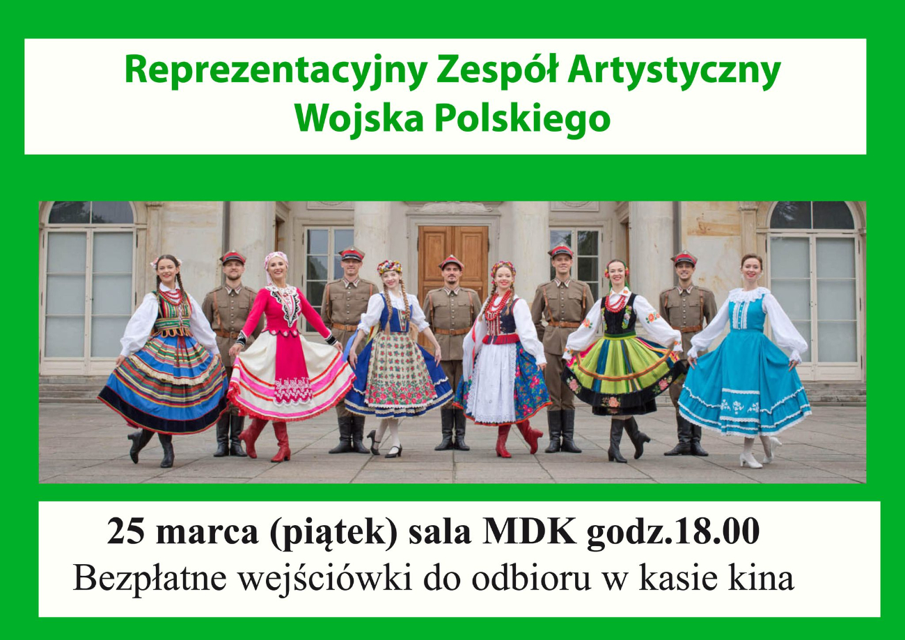 Miejski Dom Kultury w Słupcy zaprasza 25 marca (piątek) o godz. 18:00 do sali kina „Sokolnia” na Koncert Reprezentacyjnego Zespołu Artystycznego Wojska Polskiego. Darmowe wejściówki do odbioru w kasie kina.