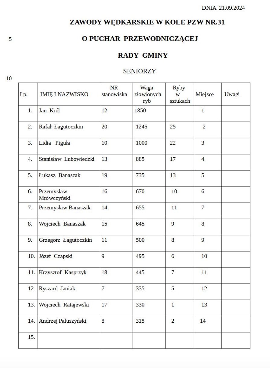 W minioną sobotę wędkarze z ostrowickiego koła wędkarskiego rywalizowali w ostatnich w tym roku zawodach. Stawką by puchar Przewodniczącej Rady Gminy Beaty Mierzejewskiej. Przedstawiamy wyniki i zdjęcia.