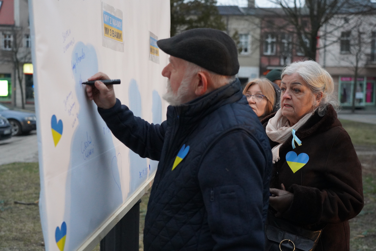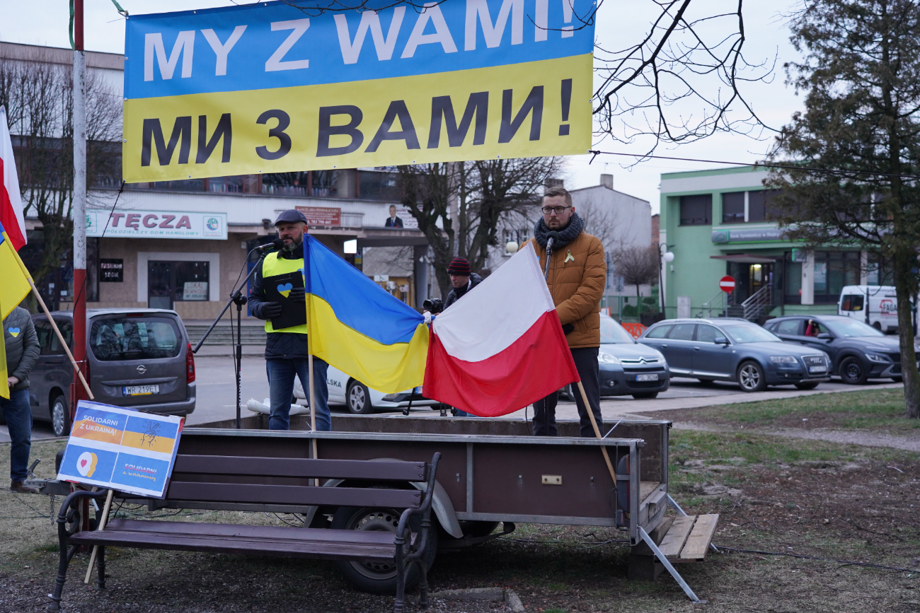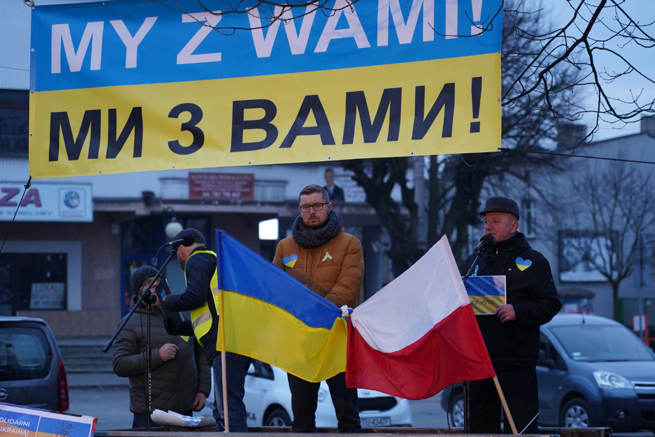 Około 100 osób spotkało się dziś na słupeckim rynku, by wyrazić solidarność z Ukrainą. Podkreślano, że bohaterscy Ukraińcy bronią nie tylko swojego kraju, ale również całej Europy. Padały też deklaracje pomocy uciekającym przed wojną uchodźcom. Obecnie na terenie naszego powiatu mieszka ich już ok. 150.