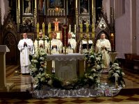 Ks. Józef Warga święcenia przyjął 62 lata temu, ks. Maciej Sławinowski – 13 lat temu, ks. Krzysztof Idczak – 7 lat temu, a ks. Radosław Czerwonka – 3 lata temu. – 3; 7; 13; 35; 62 to nie losowanie szczęśliwego numerka, a lata posługi kapłańskiej które dzięki Panu Bogu mogliśmy przeżyć, za te lata posługi chcemy dzisiaj wyrazić wdzięczność Bogu ale i Wam drodzy parafianie, za waszą obecność, dobre słowo, rozmowę i przede wszystkim Waszą modlitwę. Za wszelkie zło z naszej strony przepraszamy bo zdajemy sobie sprawę, że daleko nam do ideału.