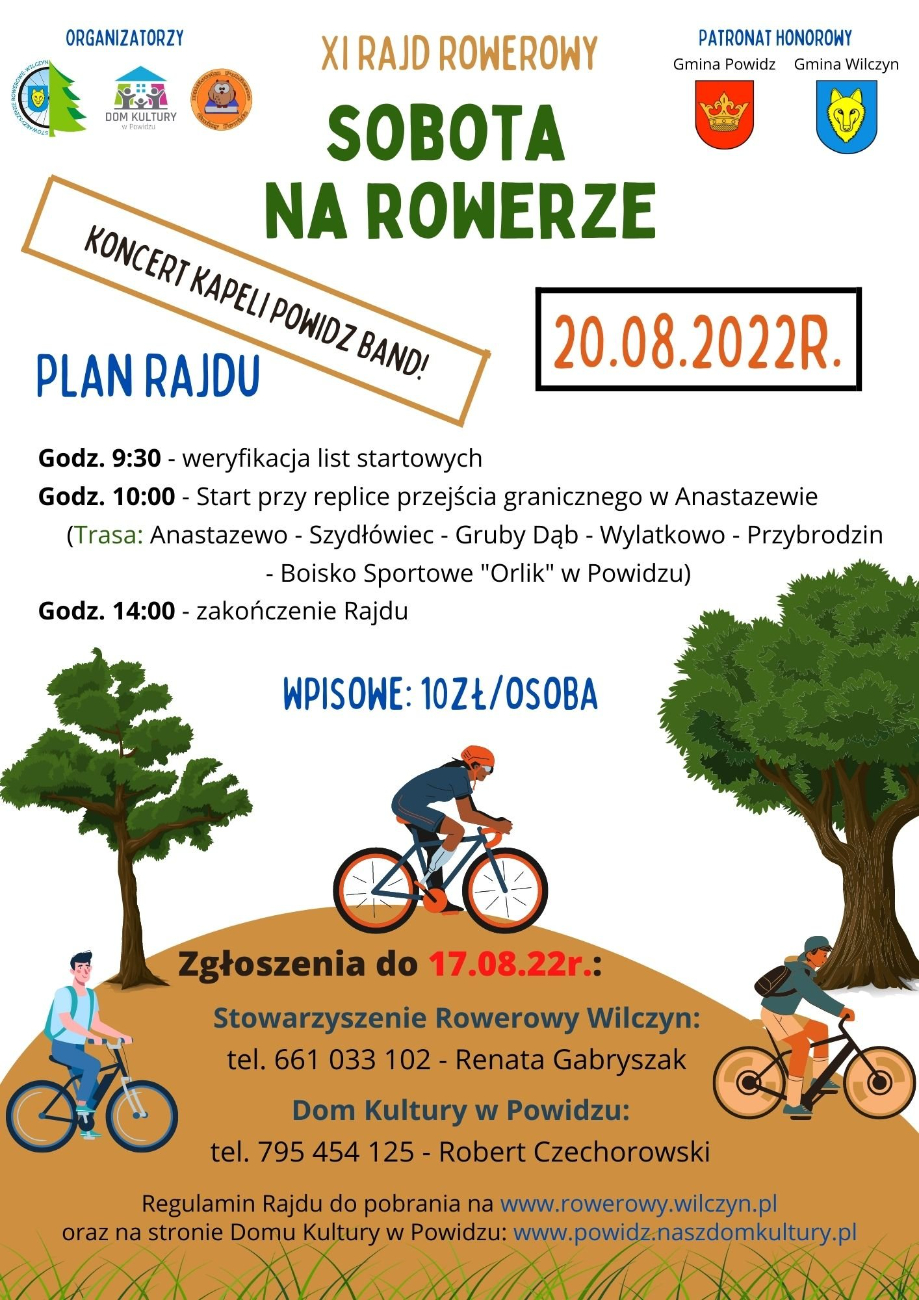 Już w sobotę 20 sierpnia odbędzie się XI Edycja Rajdu Rowerowego „Sobota na Rowerze”. Zachęcamy do zapisów, które trwają do 17 sierpnia, dzwoniąc na jeden z poniższych numerów:
