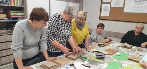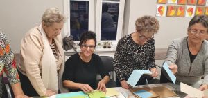 Zajęcia w ramach Klubu Senior+ w Gminie Lądek. Gmina w roku 2021 pozyskała na ten cel ponad 50 000,00 zł ze środków Wojewody Wielkopolskiego. Scrapbooking jest sztuką ręcznego tworzenia i dekorowania albumów ze zdjęciami i pamiątkami rodzinnymi. W tą sztukę plastyczną wprowadziła specjalistka w tej dziedzinie Pani Ania Nowak za co serdecznie dziękują emeryci.