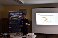 W pierwszym dniu szkolenia zaplanowano część typowo teoretyczną z wykładami i pracą w podgrupach. Kompetencje służb ratowniczych w powiecie i zarządzanie kryzysowe omówili Jerzy Kałecki i Rafał Chmiel ze słupeckiego Starostwa. O znaczeniu odprawy w kontekście pełnienia służby na wodzie i terenach przywodnych mówił Naczelnik wydziału Prewencji kom.Wojciech Kujawa. Charakteru zdarzeń nad wodą i rolę straży pożarnej w ramach obsługi zdarzeń nad wodą przzybliżył Dowódca JRG PSP w Słupcy mł.bryg. Sławomir Gołębiak. Następnie wykład o czynnościach procesowych na miejscu zdarzenia zaistniałego na terenach wodnych i przywodnych wygłosił dr Łukasz Krysiński z Wydziału Kryminalnego, a Sebastian Dropiński z KMP Konin mówił o oględzinach, jako istotnej części czynności procesowych. Następnie Henryk Czajkowski zwrócił uwagę zebranych na ocenę sprzętu nurkowego i podstawowe zasady jego użycia. Pierwszą pomoc osobom poszkodowanym nad wodą zaprezentował lekarz Piotr Andrzejewski wraz z ratownikiem medycznym Danielem Łuczakiem.