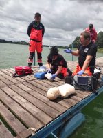 Podczas drugiego dnia szkolenia skupiono się bardziej na części praktycznej. Na akwenie jeziora oraz przy brzegu przeprowadzono szereg ćwiczeń związanych z akcjami ratunkowymi oraz udzielaniem pierwszej pomocy m.in. z udziałem strażaków ze Specjalistycznej Grupy Ratownictwa Wodno – Nurkowego KM PSP w Koninie.