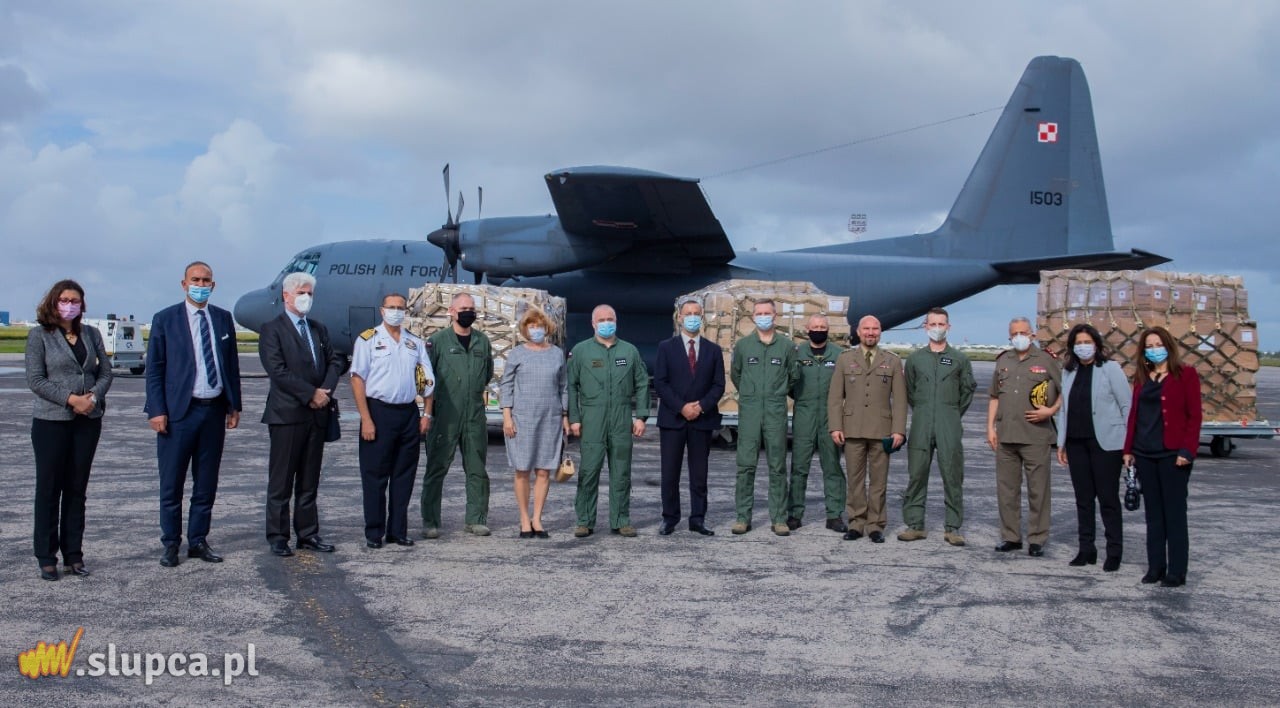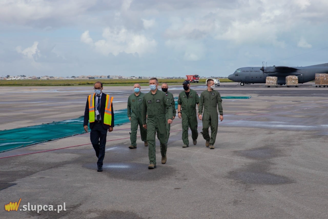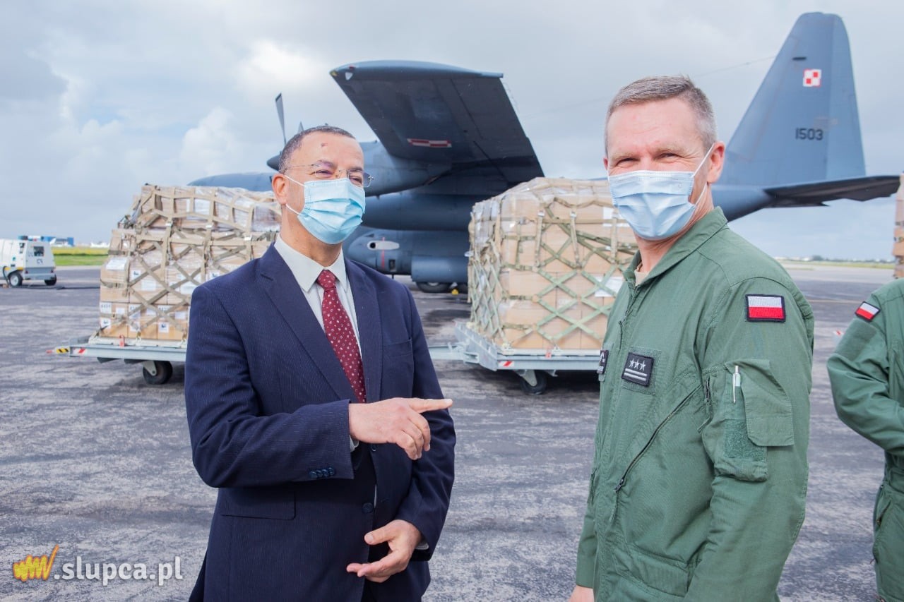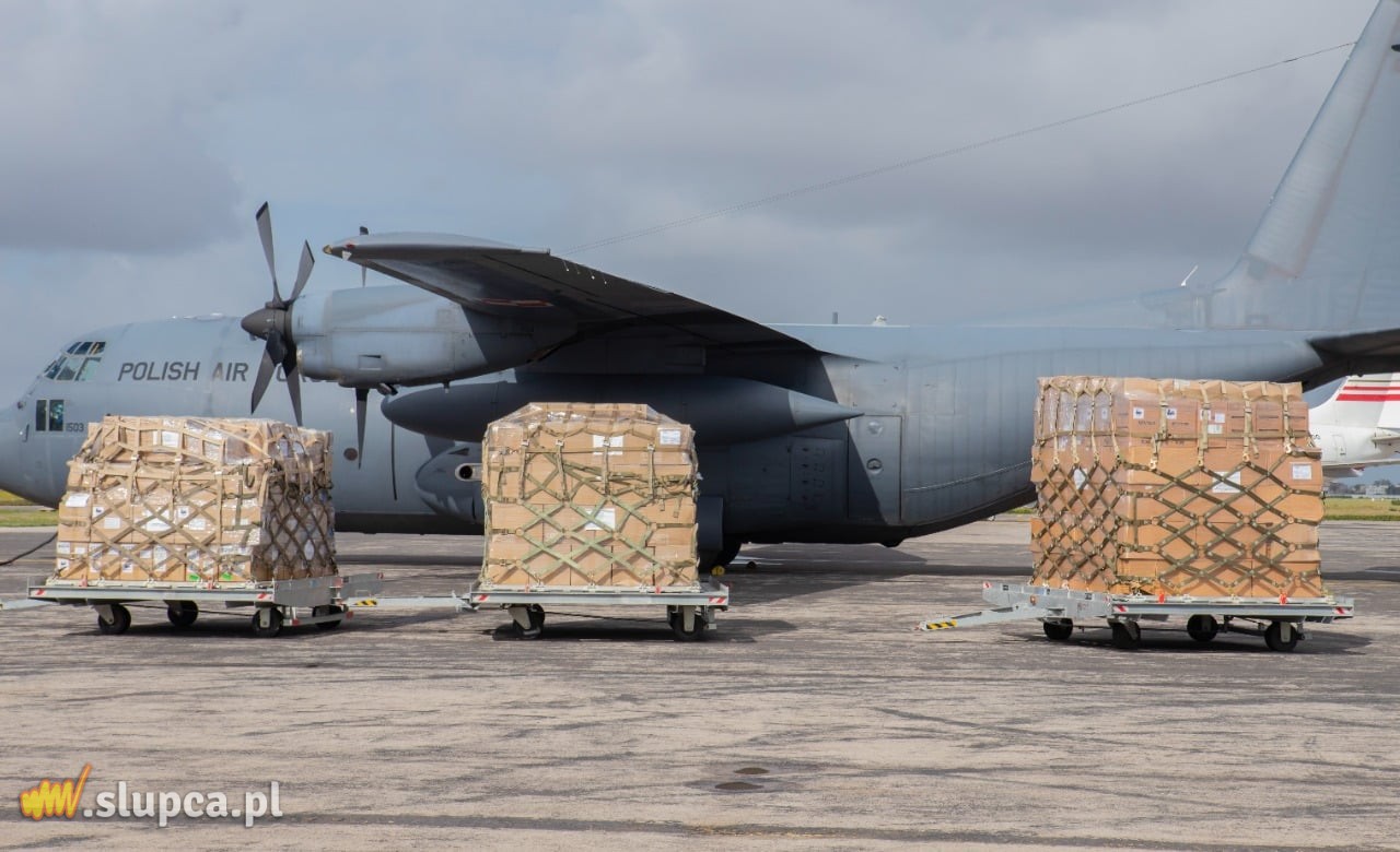 Na pokładzie samolotu C-130E Hercules z 33. Bazy Lotnictwa Transportowego dostarczono 4 tony sprzętu i artykułów medycznych w ramach pomocy humanitarnej w związku z pandemią COVID-19 na rzecz Tunezji, m.in. respiratory, kardiomonitory i pulsoksymetry. Polska przekazała pomoc o wartości 2,7 mln EUR. Zdj. www.gov.pl