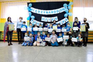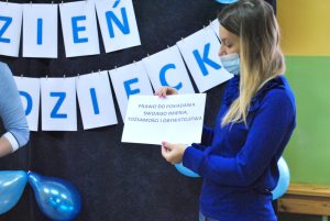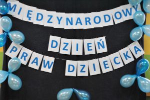 Międzynarodowy Dzień Praw Dziecka z UNICEF to wydarzenie, które jednoczy wszystkie dzieci na świecie. W ramach akcji uczniowie naszej szkoły ubrali się na niebiesko, przystroili korytarz balonami w kolorze niebieskim, obejrzeli prezentację multimedialną dotyczącą praw dziecka, a także na zajęciach świetlicowych wykonywali prace plastyczne prezentujące wybrane prawa dziecka. W każdej klasie wywieszona została konwencja o prawach dziecka.