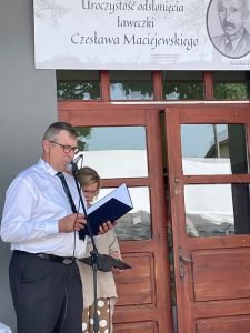W kościele parafialnym ks. Proboszcz Andrzej Jaczewski celebrował Mszę święta w intencji Czesława Maciejewskiego – lokalnego działacza, aktywisty, nauczyciela zasłużonego dla lokalnej społeczności. Msza święta i złożenie kwiatów na grobie poprzedziły uroczyste odsłonięcie pamiątkowej ławeczki, która znalazła swoje miejsce przed budynkiem remizy OSP.