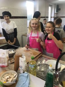 Uczniowie klasy IV pod okiem p. Jolanty Swat uczestniczyli w warsztatach kulinarnych, gdzie odkrywali tajniki kuchni, przygotowując pizzę. Z małą pomocą asystentek – uczennic Technikum Żywienia i Usług Gastronomicznych – nasi czwartoklasiści wg przepisu przygotowali i zarobili ciasto, a następnie upiekli pizzę ze swoimi ulubionymi dodatkami. Pizza była przepyszna, a swoim daniem podzielili się ze starszymi kolegami. Natomiast uczniowie z klasy V i VI brali udział w zajęciach z pielęgnacji roślin, które prowadziła p. Urszula Ławniczak oraz w warsztatach językowych prowadzonych przez p. Joannę Adamską. W czasie zajęć piąto – i szóstoklasiści dowiedzieli się, w jaki sposób rozmnożyć i przesadzić roślinę zgodnie ze sztuką ogrodniczą, a także sporządzić ciecz nawozową w odpowiedniej dawce. Czy u młodych ogrodników udało się zaszczepić pasję do uprawy roślin? Z pewnością się dowiemy, bowiem z zajęć zabrali własnoręcznie posadzone młode roślinki, które obiecali pielęgnować w domu. Wzbogacili także kompetencje językowe po angielsku, ponieważ nauczyciel anglista przeprowadził ciekawą lekcję o uprawie roślin.